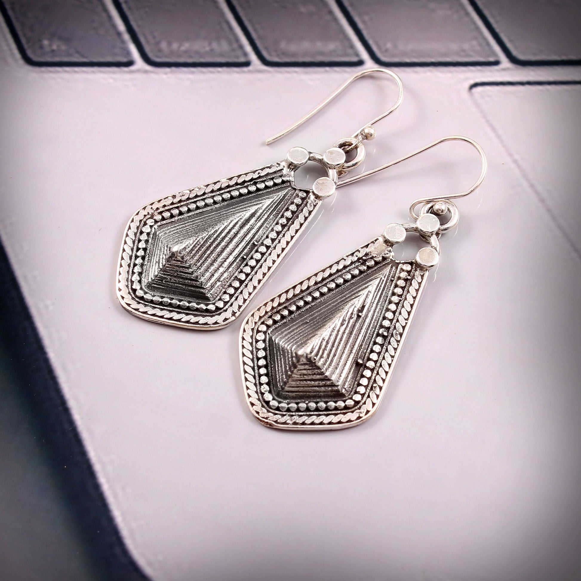 Astrae™ Silver Geometry Drop Earrings