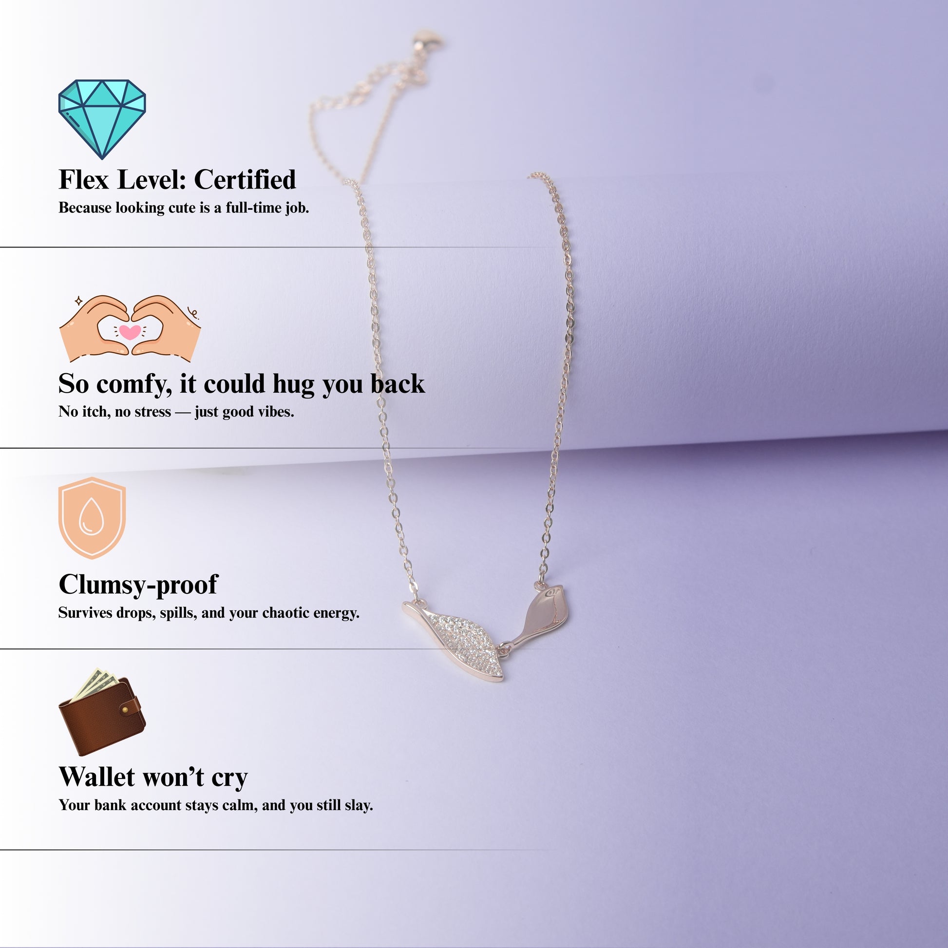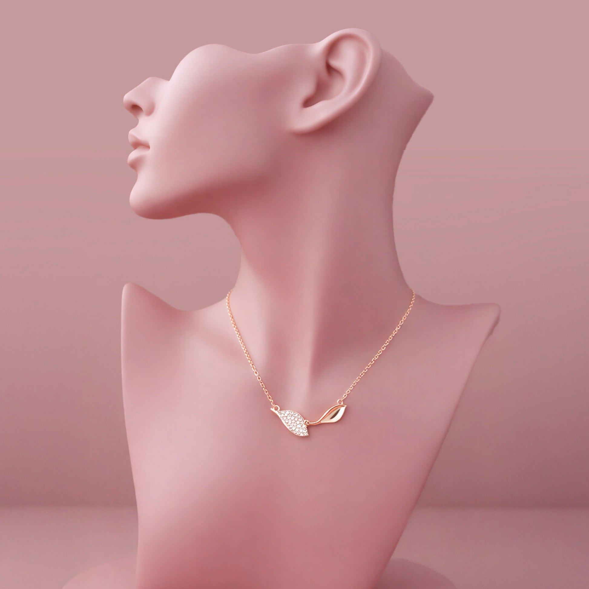 Veloria™ by Zyrene – Twin Leaf Rose-Gold Necklace | Minimal Sparkle Pendant | 925 Sterling Silver | Everyday Luxe